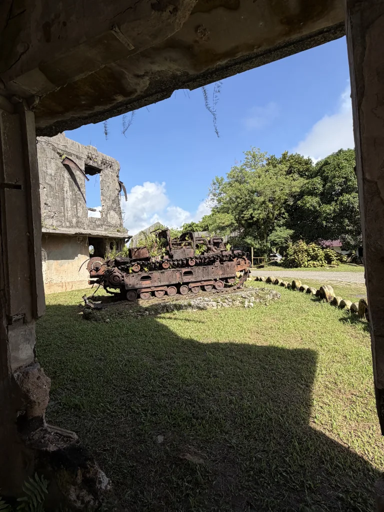- What to see: You can wander through the bombed-out shell of the building. Outside, you’ll find rusted Japanese tanks and anti-aircraft guns being slowly reclaimed by the jungle.